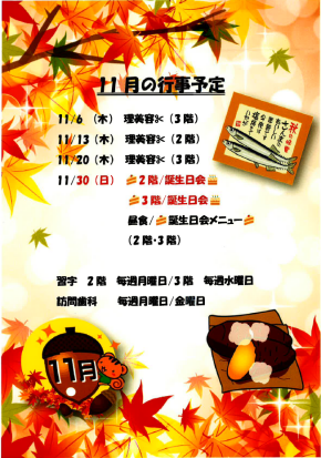 この度、当施設におきまして、インフルエンザの予防接種を下記の通り実施することとなりましたので、お知らせいたします。【対象】接種を希望されたご利用者様【接種日】2階ご利用者様:10月20日(月)3階ご利用者 ...